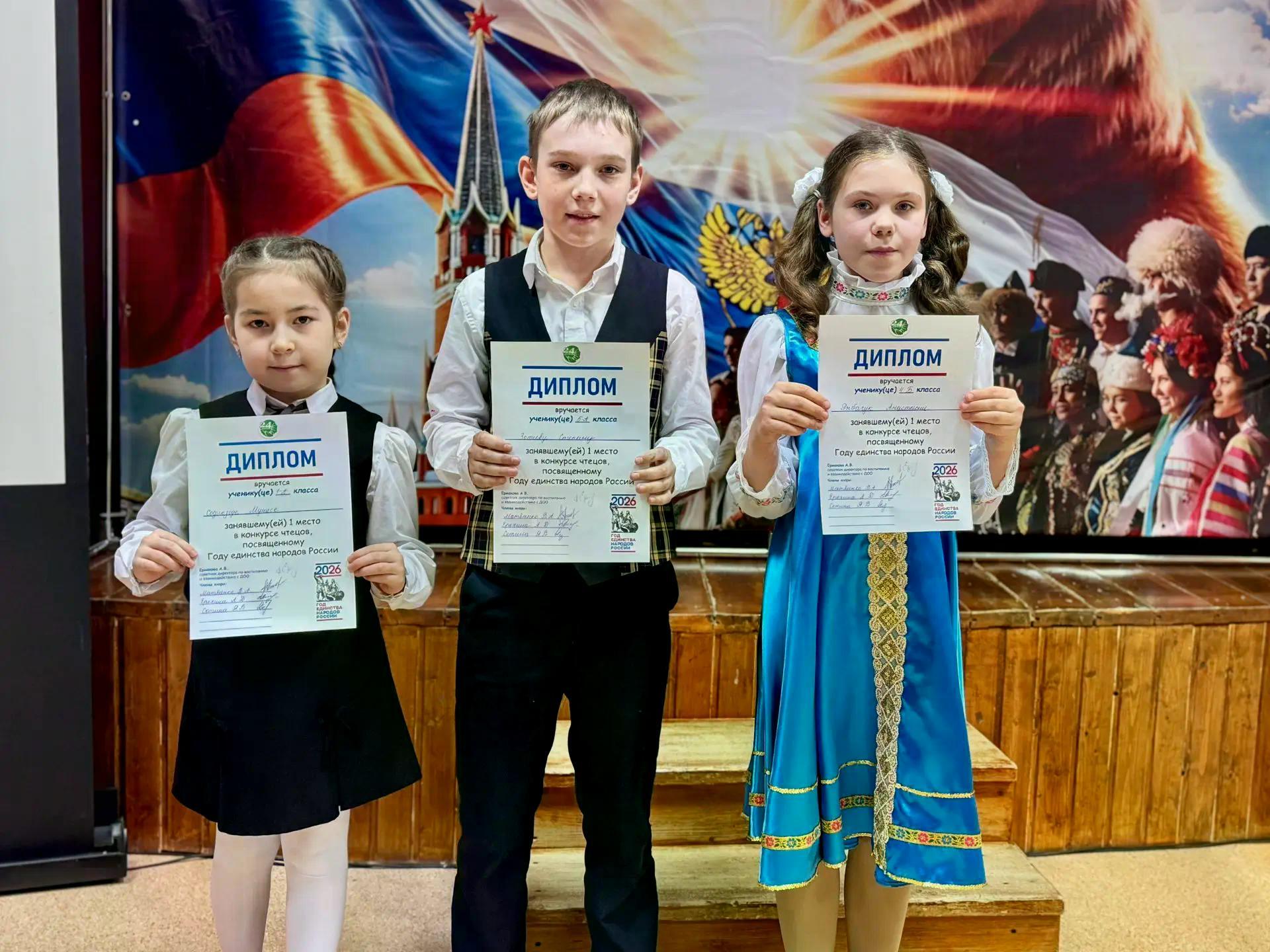 В школе прошел конкурс чтецов, посвященный Году единства народов России. В этом году хотелось обратить особое внимание на богатство и разнообразие культур нашей страны, ведь 2026 год был объявлен Годом единства народов России - это и стало основной темой конкурса.