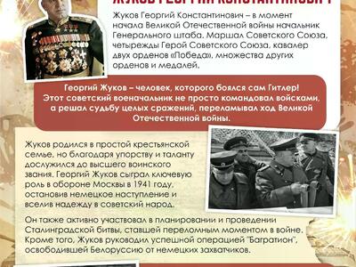 Жуков Георгий Константинович - в момент начала Великой Отечественной войны начальник Генерального штаба. Маршал Советского Союза, четырежды Герой Советского Союза, кавалер двух орденов «Победа», множества других орденов и медалей.