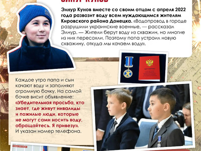 Элнур Кунов вместе со своим отцом с апреля 2022 года развозит воду всем нуждающимся жителям Кировского района Донецка.